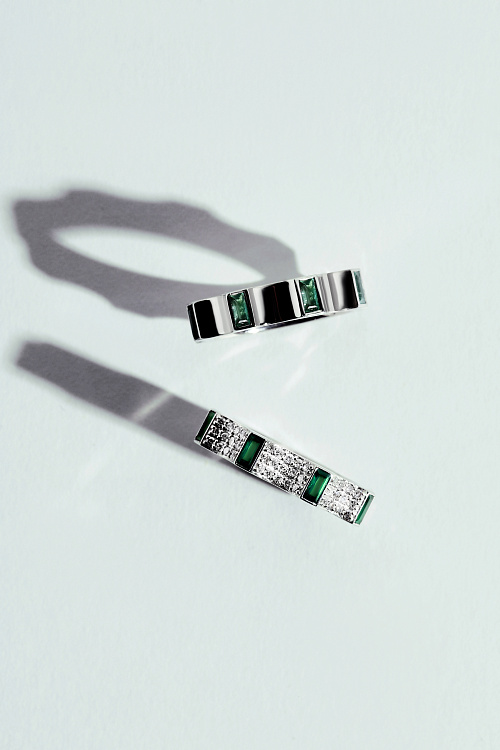 Белое золото 18 карат с бриллиантами и изумрудами | Высота: 4 mm | Масса: 7.25 g