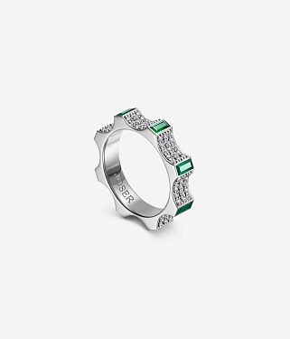 Белое золото 18 карат с бриллиантами и изумрудами | Высота: 4 mm | Масса: 7.25 g