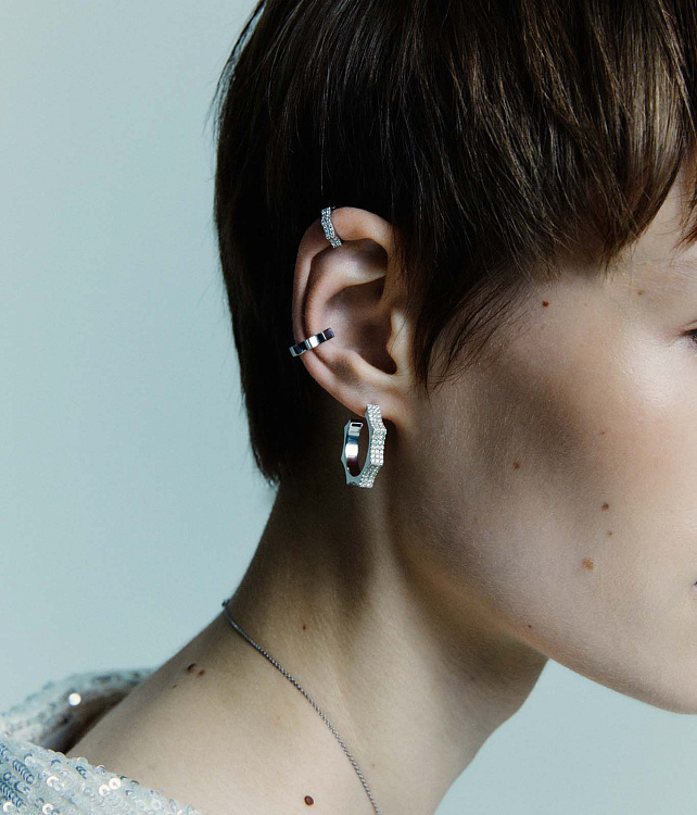 Серьги Parthenon, белое золото 18 карат, бриллианты, 4 мм, размер Medium